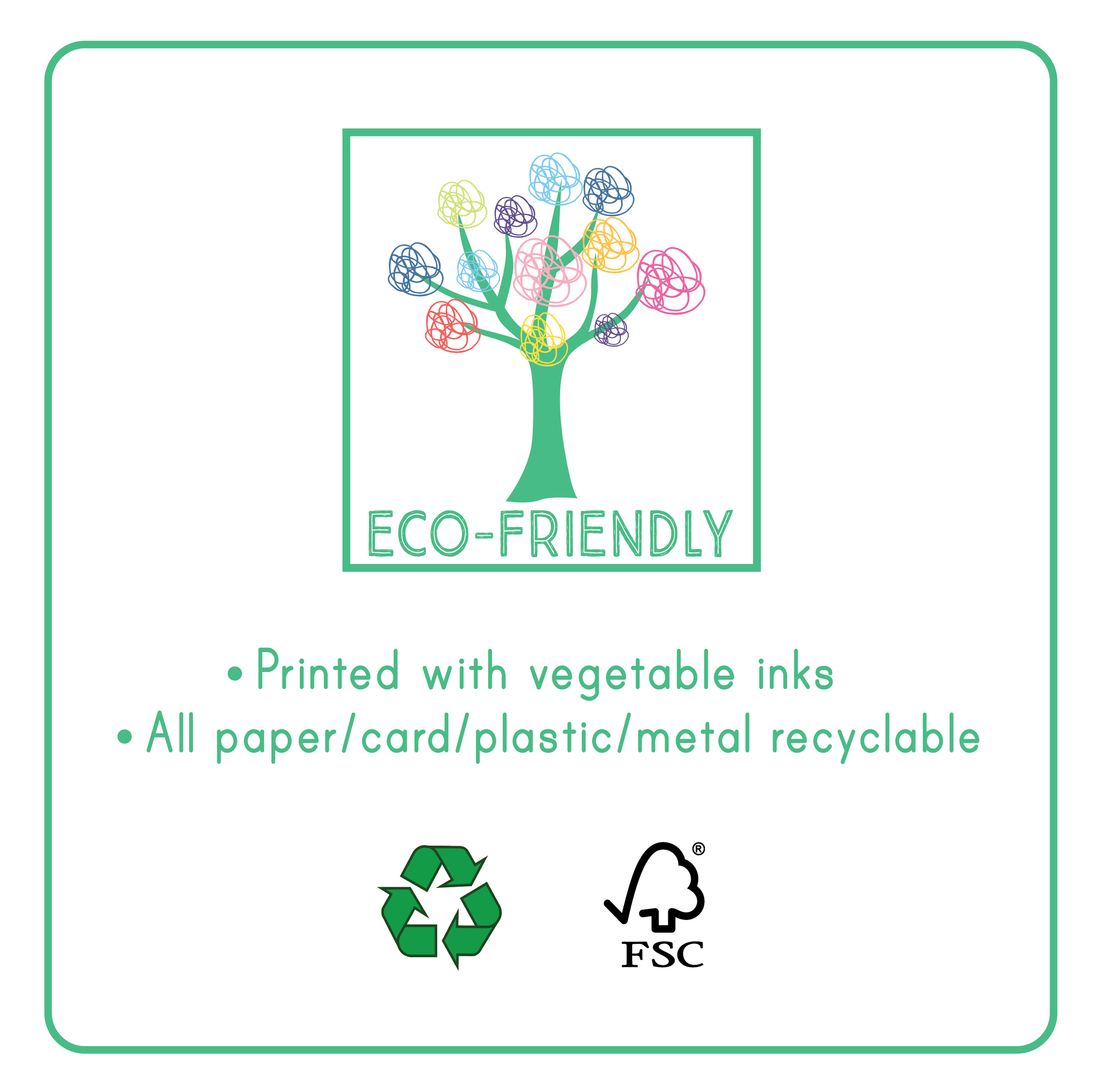 • Printed with vegetable inks. All paper/card/plastic/metal recyclable.