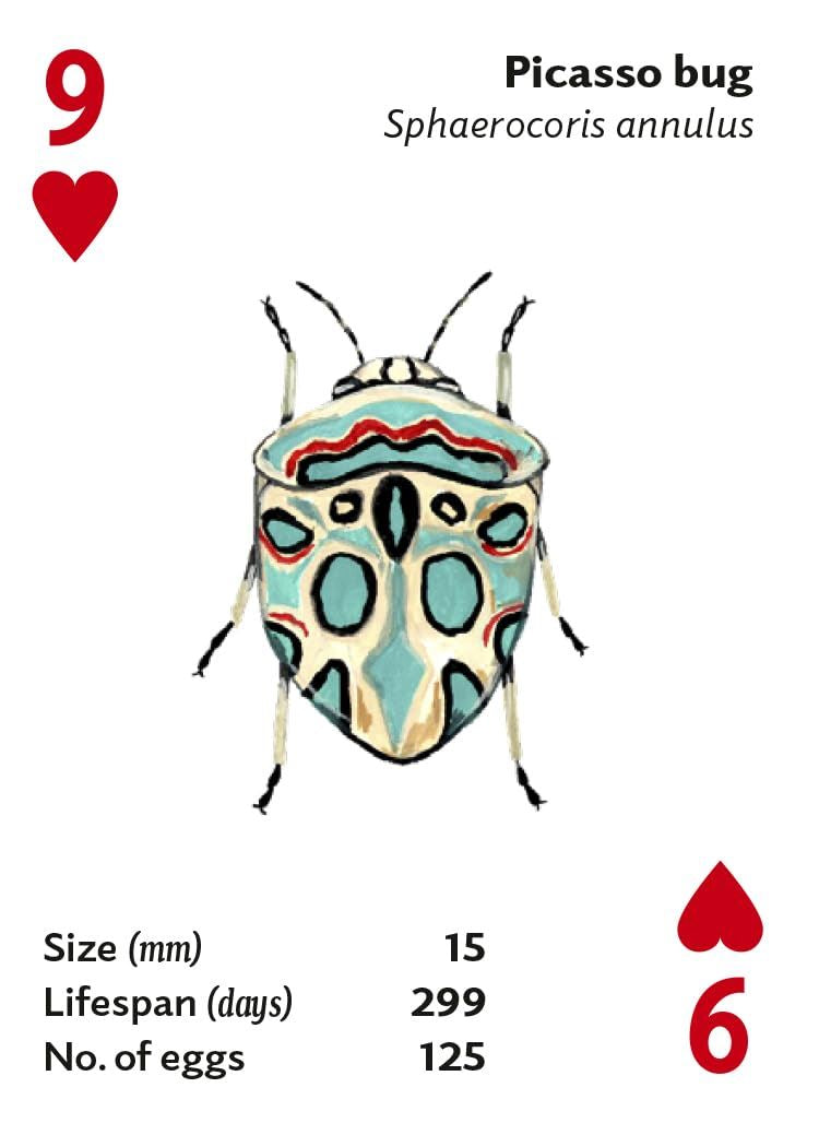 Celebrate incredible insects from around the world with this deck of playing cards, ideal for minibeast wranglers of all ages, and families and friends who enjoy spending quality time together. The cards are suitable for games played with a standard deck, but also feature a Brilliant Bugs game, with subjects ranked in three different categories. Gift box contains 54 beautifully illustrated cards and an informative booklet with game rules, bug trivia and tips for recognising species when out and about.
