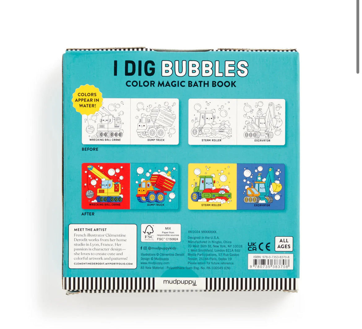 The I Dig Bubbles! Color Magic Bath Book is a splash of aquatic fun for your little one's bath time adventures! Adorable construction vehicles swap dirt for bubbles, working together in a sea of colorful suds. Simply dip the pages in water and watch as the colors magically appear before your eyes. From bright oranges of the diggers to the vibrant yellows of the trucks, the transformation is sure to captivate your little one's imagination.