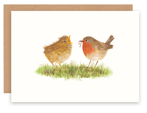 Cécile Berrubé Greetings Card - Robins Cuddling