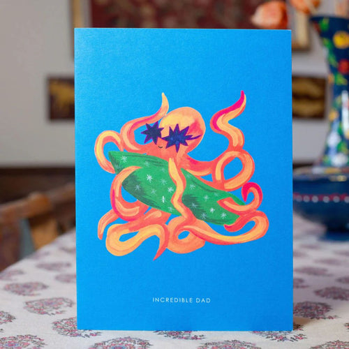 Surfing Octopus Incredible Dad Greetings Card by Hutch Cassidy