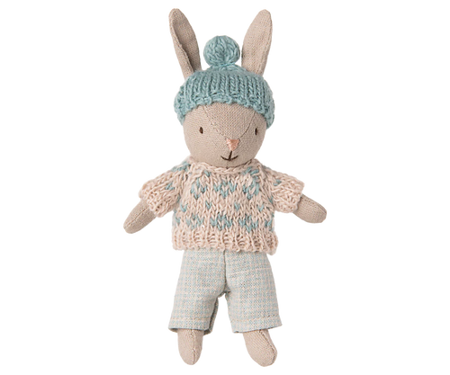 Maileg Micro Rabbit - Brown with Blue Knitted Suit