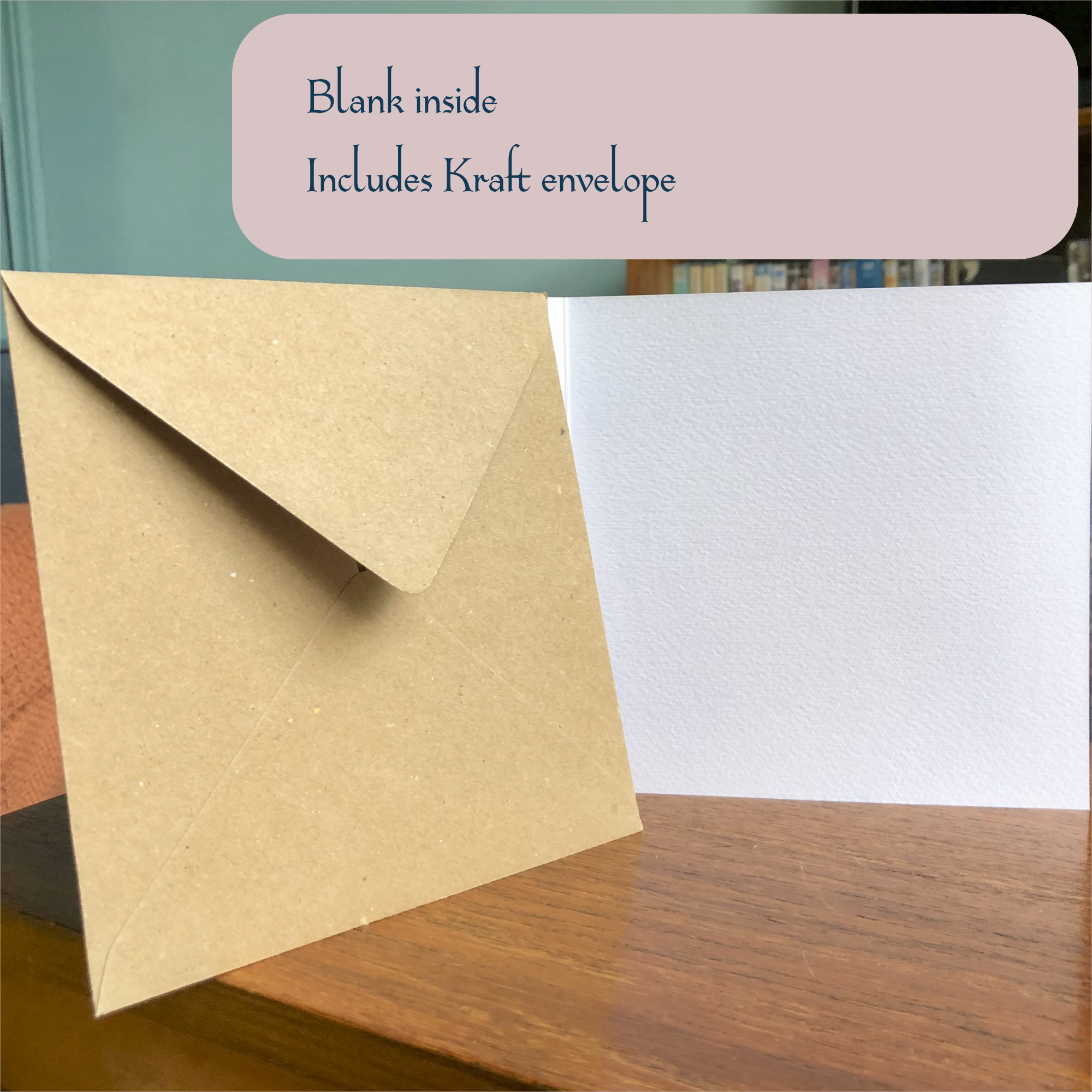 Printed in the UK on FSC-certified textured board and supplied with a recycled Kraft envelope. What size are the greeting cards? Each greeting card measures 150 × 150 mm square. Are the cards blank inside? Yes, blank for personal messages