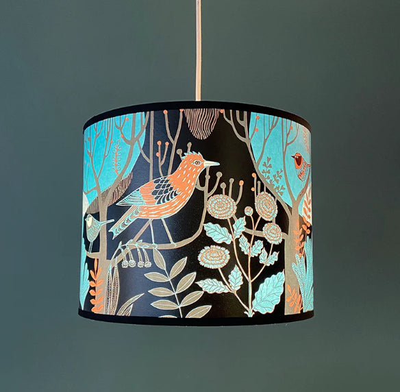 Richly screen-printed in many colours, you can almost smell the forest and hear the rustling of birds in the undergrowth.