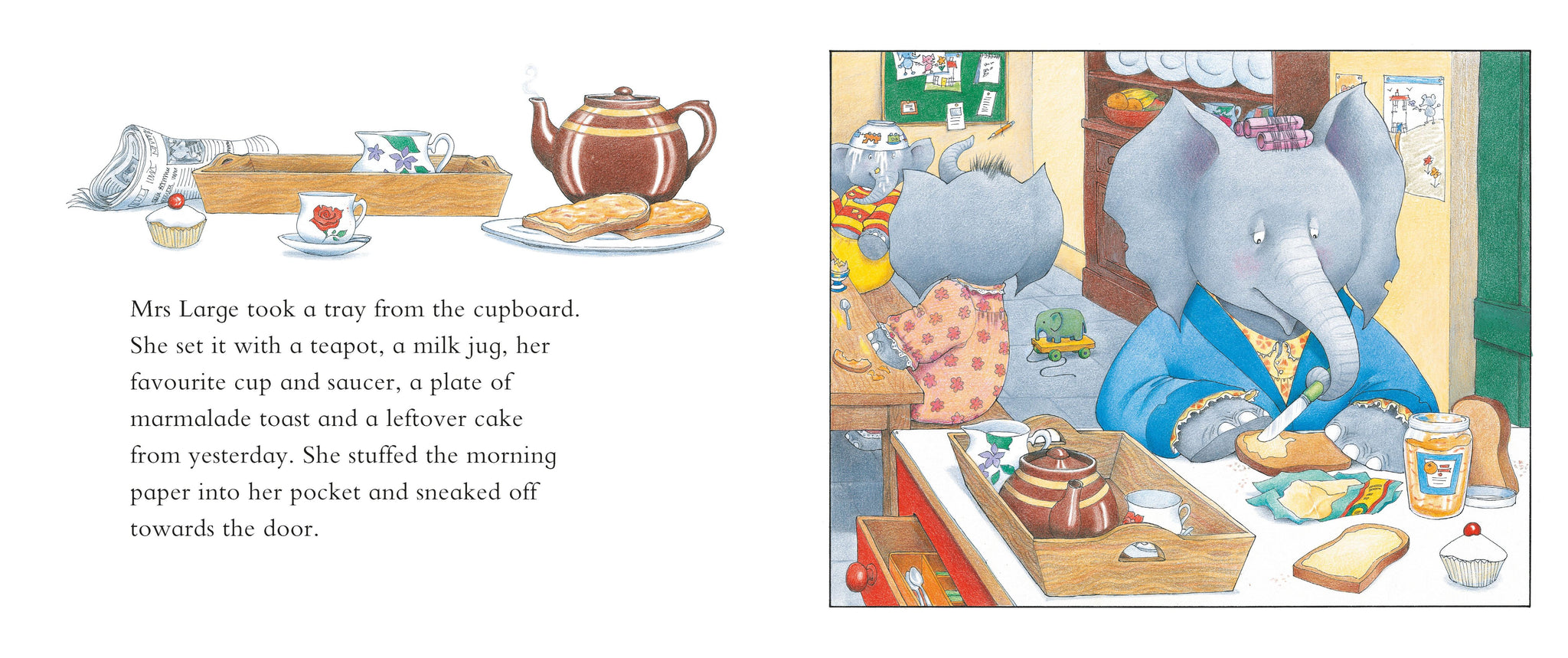 40th anniversary edition of a picture book favourite, now with a shiny gold foil cover. Mrs Large the elephant just needs five minutes of peace and quiet away from her boisterous children. Taking refuge in the bathroom, she fills herself a hot, foamy bubble bath and takes in a tray of her favourite breakfast and the morning paper. But there's never a dull moment with the Large family, and it soon becomes clear that mum's quiet time will be very short-lived indeed.