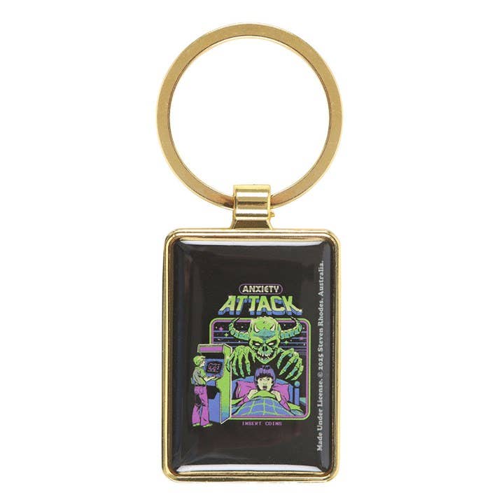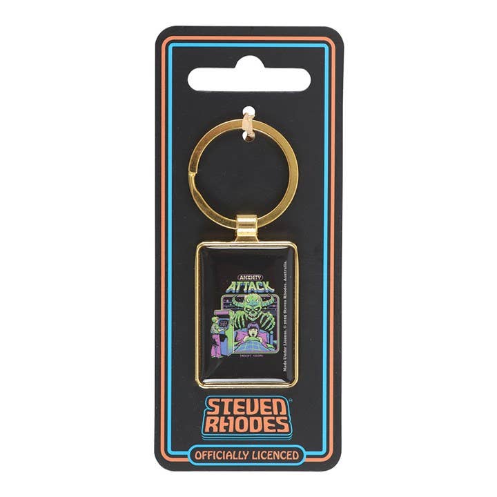 Ever feel like your life’s being controlled by a sadistic gamer with zero chill? This enamel keyring captures that chaotic childhood feeling of goblins, nightmares, and the overwhelming dread of existence, all in retro arcade style. Perfect for anyone whose anxiety deserves its own boss battle. Officially licensed and part of the Steven Rhodes collection of iconic retro gifts.