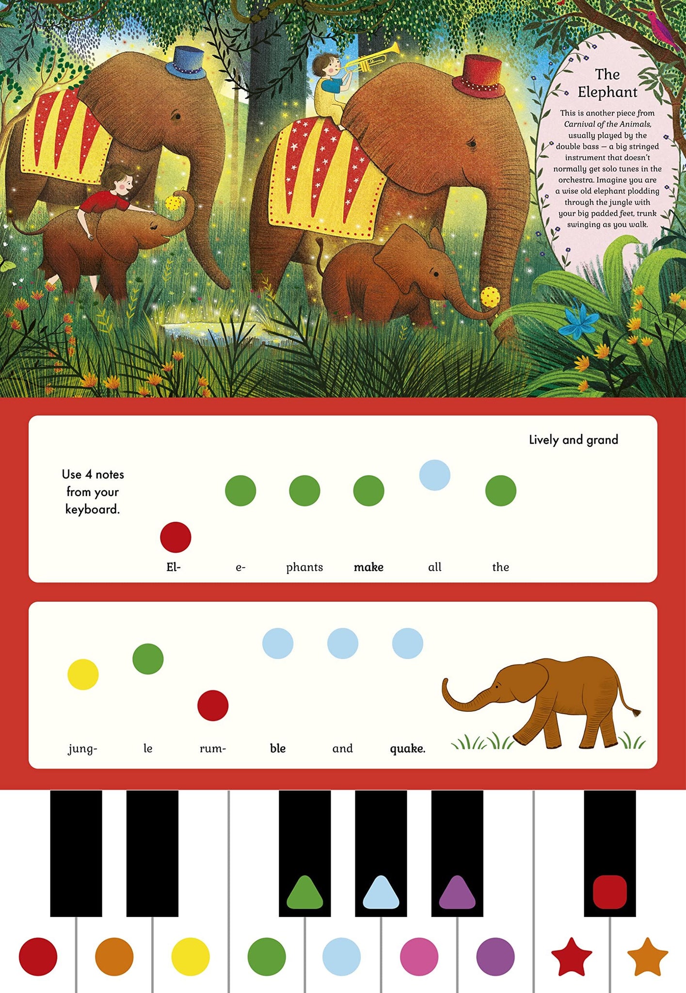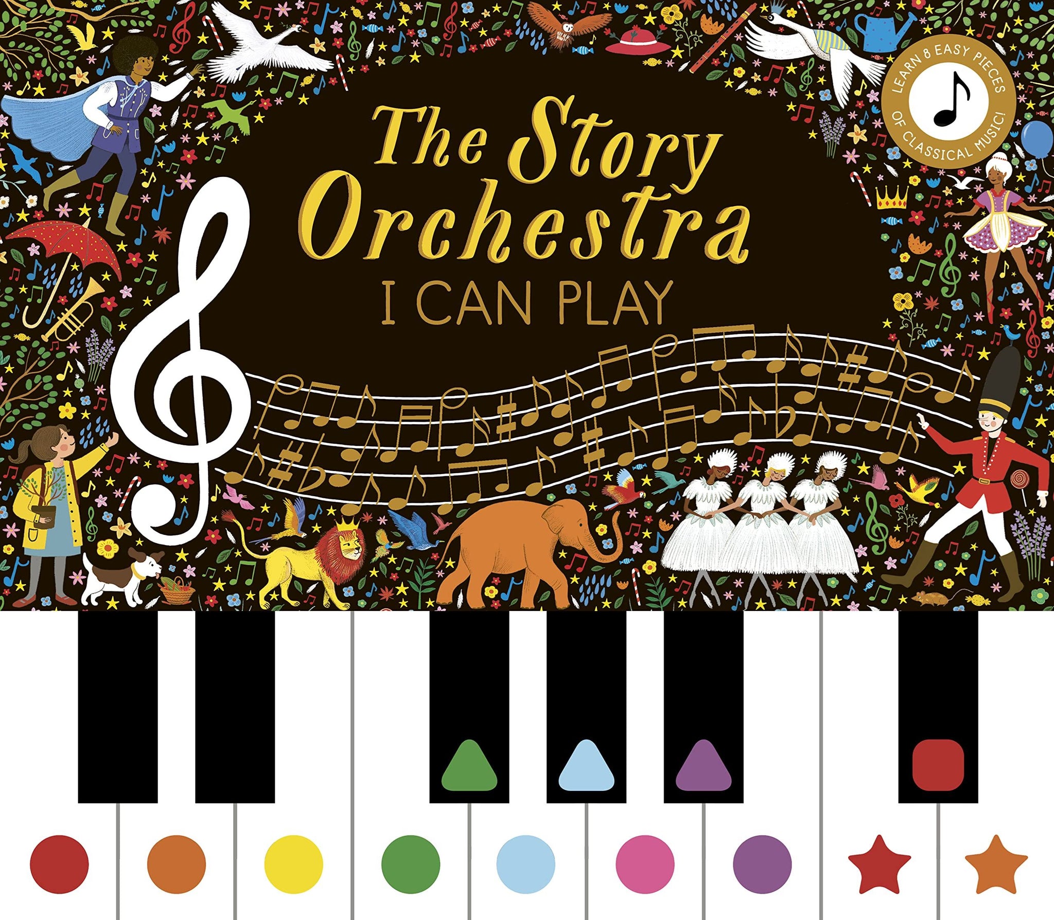 From the The Story Orchestra series, a beautifully illustrated first piano sound book! Colour and shape codes correspond to the 14 keys, so kids can learn easy 8-bar, one-finger melodies. Each song includes an enchanting illustration and description of the part of the story that the music is telling along with playing tips. All the favourite characters from the series are there to encourage young musicians as they play their first notes with the sound of a piano.